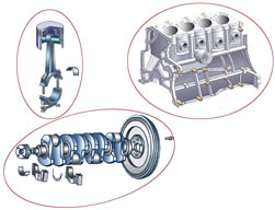 组成:曲柄连杆机构的主要零件可以分为三组,机体组、活塞连杆组和曲轴飞轮组。