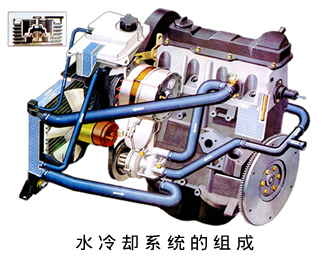 汽车发动机的水冷系统均为强制循环水冷系统,即利用水泵提高冷却液的压力,强制冷却液在发动机中循环流动。这种系统包括水泵、散热器、冷却风扇、节温器、补偿水桶、发动机机体和气缸盖中的水套以及其他附加装置等。