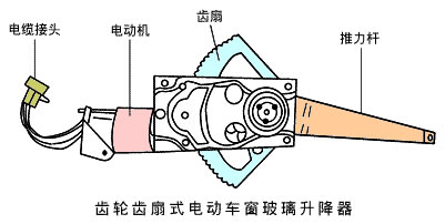 一、电动车窗 电动车窗主要由车窗玻璃升降器(又称换向器)、电动机、控制电路等组成。车窗玻璃升降器主要有蜗轮蜗杆式、齿轮齿扇式和齿轮齿条式等类型。 桑塔纳2000型轿车所用的电动车窗玻璃升降器,机械部分主要由蜗轮、蜗杆、绕线轮、钢丝绳、导轨、滑动支架等组成。当电动车窗玻璃升降器中直流永磁电动机电路接通后,转轴输出转矩,经蜗轮蜗杆减速后,再由缓冲联轴器传递到转丝筒,带动转丝筒旋转,使钢丝绳拉动安装在玻璃支架上的滑动支架在导轨中上下运动,达到车窗玻璃升降的目的。